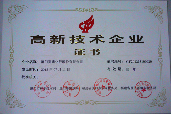 祝賀翔鷺化纖榮獲“高新技術(shù)企業(yè)”“納稅特大戶”稱號(hào)根據(jù)《高新技術(shù)企業(yè)認(rèn)定管理辦法》和《高新技術(shù)企業(yè)認(rèn)定管理工作指引》有關(guān)規(guī)定及全國高新技術(shù)企業(yè)認(rèn)定管理工作領(lǐng)導(dǎo)小組辦公室《關(guān)于廈門市2012年第二批高新技術(shù)企業(yè)復(fù)審備案申請(qǐng)的復(fù)函》現(xiàn)確認(rèn)廈門翔鷺化纖股份有限公司為高新技術(shù)企業(yè),頒發(fā)“高新技術(shù)企業(yè)證書”授予“高新技術(shù)企業(yè)”稱號(hào)。