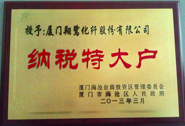 為表彰各企業(yè)對(duì)提升海滄區(qū)經(jīng)濟(jì)綜合競(jìng)爭力,增加財(cái)政收入,促進(jìn)社會(huì)全面進(jìn)步作出的重要貢獻(xiàn),海滄區(qū)召開2012年度納稅大戶暨創(chuàng)建商標(biāo)品牌表彰大會(huì),授予我司“納稅特大戶”稱號(hào),并獎(jiǎng)勵(lì)10萬元。
