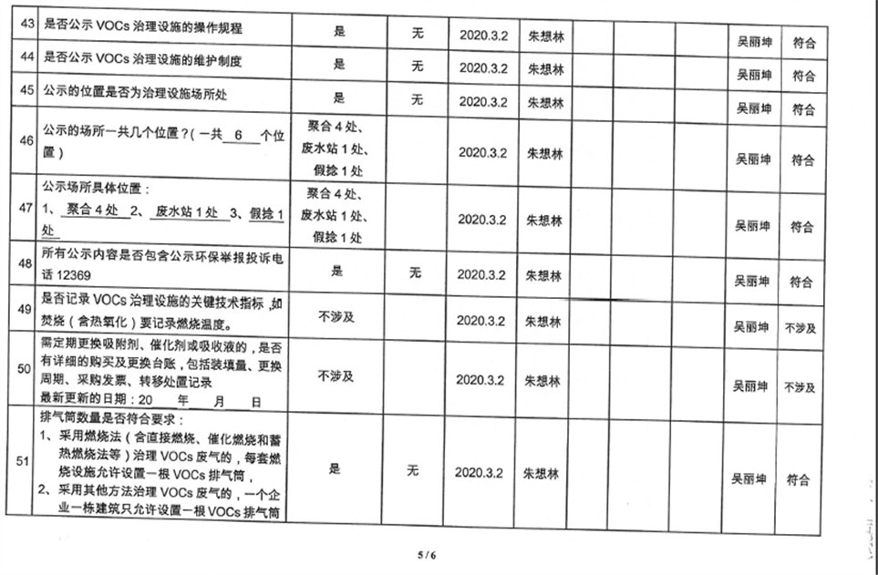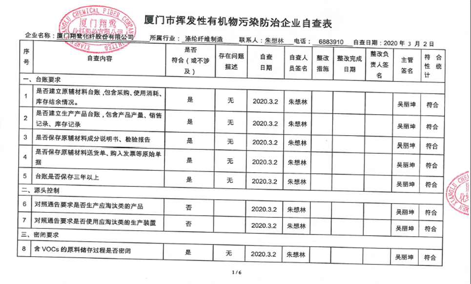 廈門市揮發(fā)性有機(jī)物污染防治企業(yè)自查表(2020年第一季度)