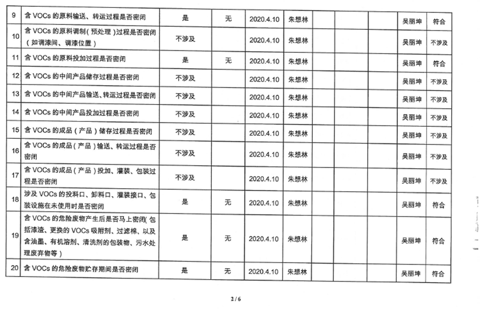 廈門市揮發(fā)性有機(jī)物污染防治企業(yè)自查表(2020年第二季度)